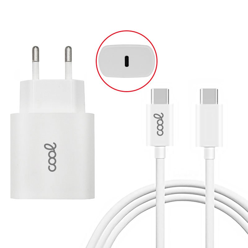 Cargador Red COOL Entrada TIPO-C PD + Cable Tipo C 1,2 metros (20W)