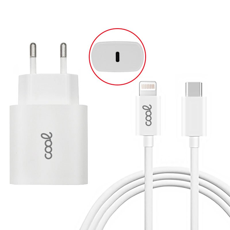 Cargador Red para iPhone COOL Entrada TIPO-C PD + Cable Tipo C - Lightning 1,2 metros (20W)