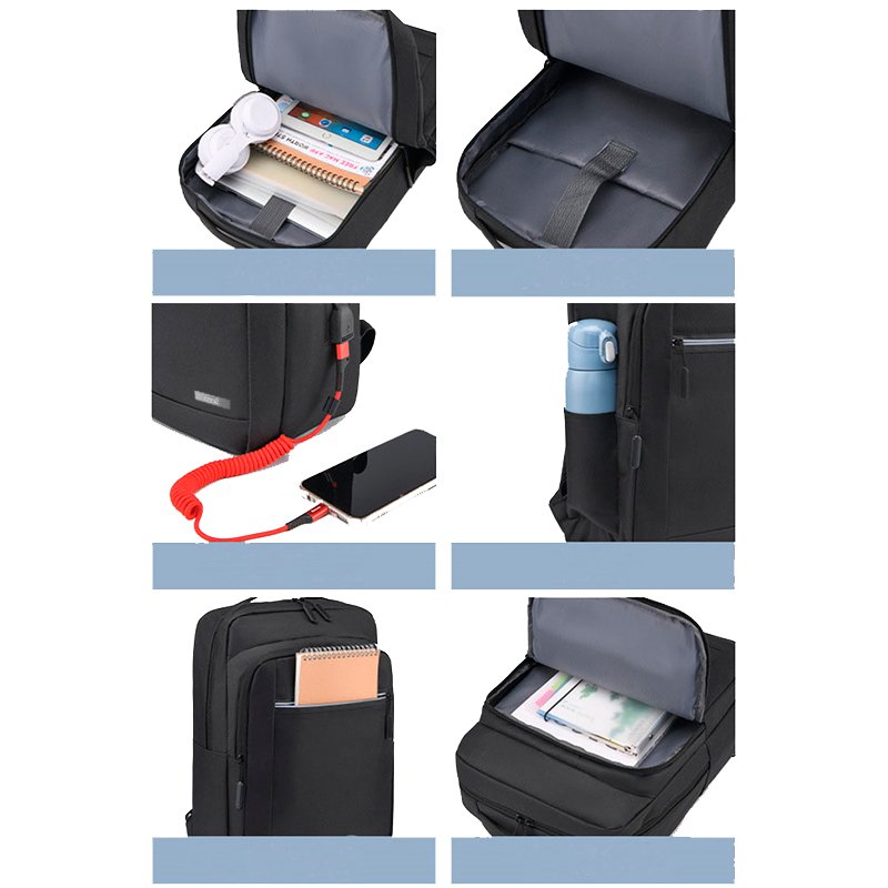 Incorpora bolsillos con cremallera central, bolsillos y compartimentos interiores, y puerto USB con cable comunicado a un bolsillo pequeño interior, ideal para meter tu powerbank / Batería externa (no incluída) y poder así cargar tu smartphone.